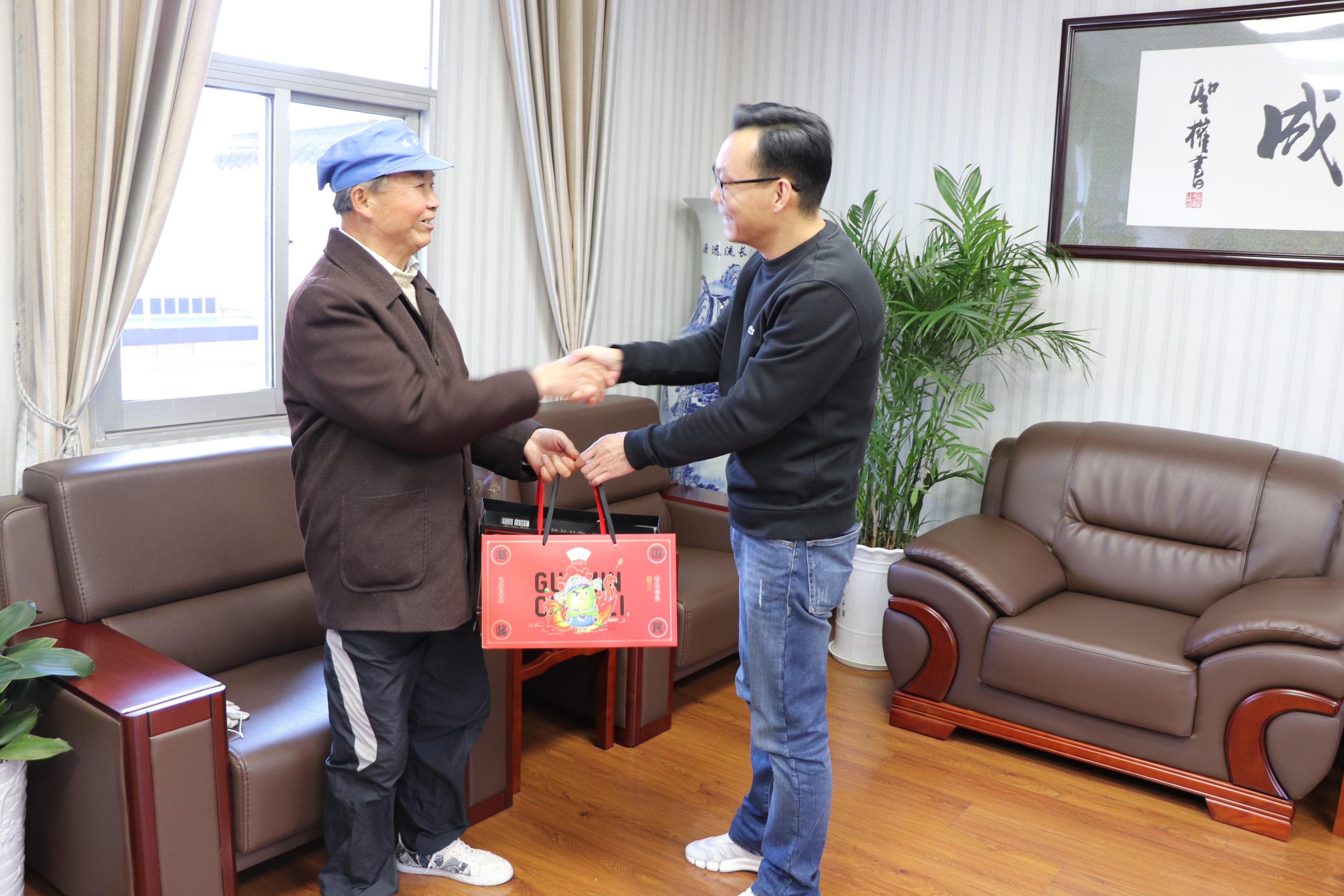12月16日,懷著對(duì)胡玉美的美好回憶和深切眷戀,嚴(yán)師傅回到公司,與董事長(zhǎng)顏志勇同敘初心,共話佳績(jī)。顏志勇詳細(xì)介紹了在新冠疫情的巨大沖擊下,公司積極想辦法、練內(nèi)功、自救破局的舉措。顏志勇誠(chéng)摯地感謝嚴(yán)師傅為公司奉獻(xiàn)了青春智慧與汗水,親手將回信與胡玉美“醬”心禮送到他的手中,并祝福他健康長(zhǎng)壽、闔家幸福!