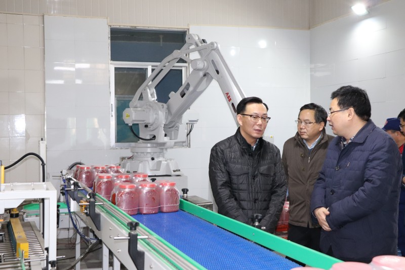 調(diào)研期間,楊旭東一行實地察看了胡玉美部分生產(chǎn)車間,看到傳統(tǒng)企業(yè)已擁有智能碼垛機器人等先進自動化設(shè)備,楊局長盛贊胡玉美善于突破,敢于創(chuàng)新。隨后,楊局長與董事長顏志勇進行了深入的座談交流,他高度贊揚公司以黨建為引領(lǐng),勇?lián)鐣熑?,在疫情和汛情的雙重影響下逆勢突圍,取得較為不錯的成績,并強調(diào)要提振信心,2021年厚積薄發(fā),再上臺階,再譜新篇!