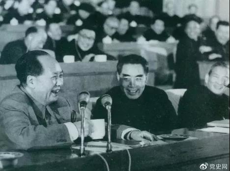 ▲1962年初,毛澤東和周恩來、陳云在中共中央召開的擴(kuò)大的中央工作會議(即七千人大會)上。