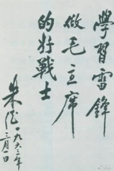 ▲1963年3月1日,朱德關(guān)于向雷鋒學(xué)習(xí)的題詞。