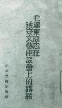 ▲1942年5月2日至23日,延安文藝座談會召開。圖為中共晉綏分局刊印的《毛澤東同志在延安文藝座談會上的講話》。