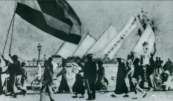 ▲1919年5月4日,北京爆發(fā)學(xué)生反帝愛國運動。這是北京大學(xué)學(xué)生的示威游行隊伍。