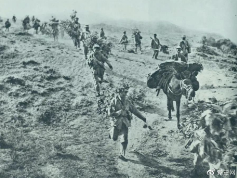 ▲圖為1947年5月在孟良崮戰(zhàn)役中,華東野戰(zhàn)軍向孟良崮挺進(jìn)。