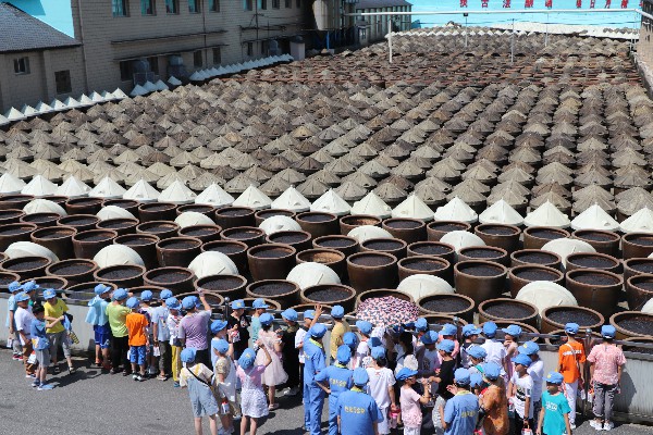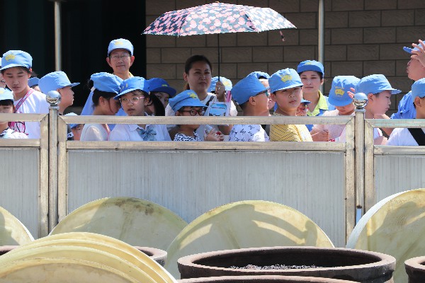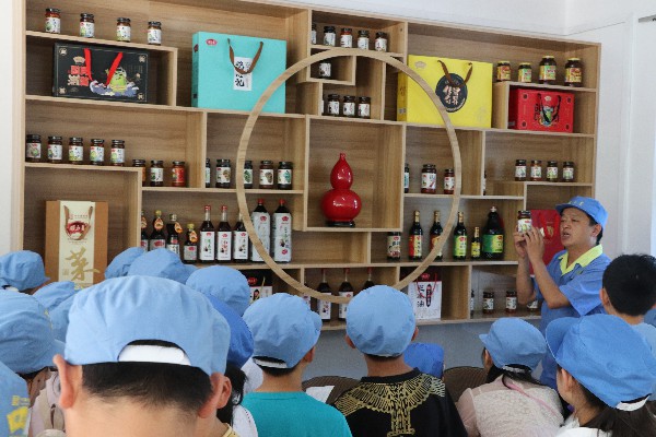 在公司二樓會(huì)議室,同學(xué)們認(rèn)真聆聽(tīng)著胡玉美近兩百年波瀾壯闊的奮斗歷程、初心不改的工藝傳承,并觀看了胡玉美企業(yè)宣傳片及蠶豆辣醬非遺制作技藝宣傳片,對(duì)“老字號(hào)”的堅(jiān)守與創(chuàng)新有了更深一步的了解。隨后,盡管頂著烈日“烤”驗(yàn),師生們依然興致勃勃地參觀了非遺技藝操作車(chē)間及曬場(chǎng),近距離感受胡玉美蠶豆辣醬的非遺制作技藝,并暢享自己的所學(xué)所想,成就感油然而生。一場(chǎng)匠心獨(dú)運(yùn)的非遺之旅,令莘莘學(xué)子領(lǐng)略到“百年老字號(hào)”的歷史底蘊(yùn),非遺的獨(dú)特魅力在孩子們的心中悄然生根發(fā)芽。