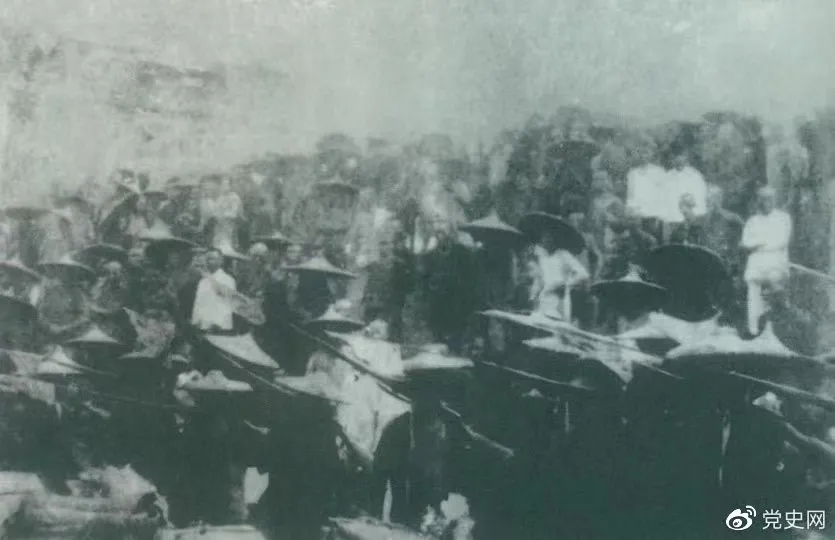 ▲1926年7月9日,國(guó)民革命軍開始北伐。兩天后,北伐軍的先頭部隊(duì)葉挺獨(dú)立團(tuán)攻占了長(zhǎng)沙,然后向武漢進(jìn)攻。一路上,迅猛發(fā)展的農(nóng)民運(yùn)動(dòng)有力地配合了北伐戰(zhàn)爭(zhēng)。在湖南、江西、湖北,農(nóng)民運(yùn)動(dòng)越來(lái)越引人注目。這是支援北伐戰(zhàn)爭(zhēng)的農(nóng)民自衛(wèi)軍。