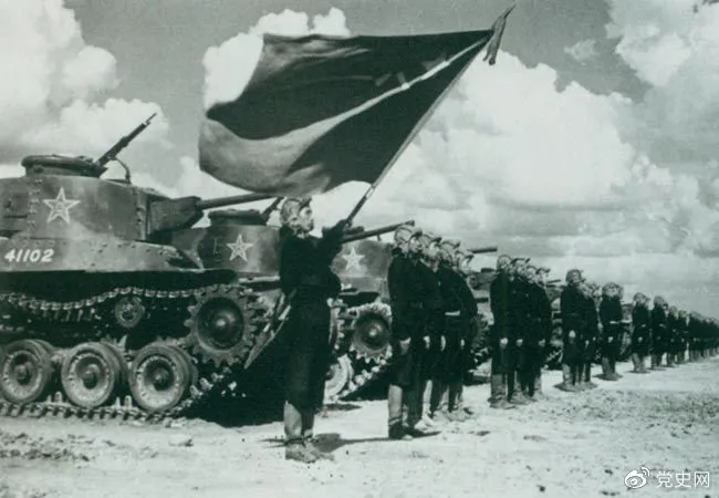 ▲1950年9月,中國人民解放軍裝甲兵領(lǐng)導(dǎo)機(jī)構(gòu)在北京成立。圖為坦克部隊陣容。
