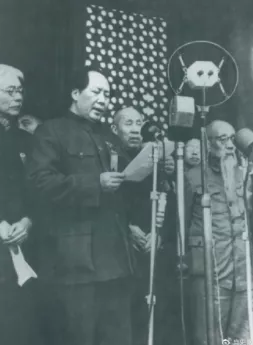 ▲開國大典。1949年10月1日,毛澤東在天安門城樓上莊嚴宣告:中華人民共和國成立了!
