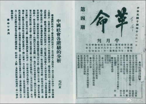 1925年12月1日毛澤東在國民革命軍第二軍司令部編印的《革命》第四期發(fā)表《中國社會各階級的分析》一文。這篇文章是毛澤東為反對當時黨內存在著的兩種傾向而寫的。一種傾向是只注意同國民黨合作,忘記了農民;另一種傾向是只注意工人運動,同樣忘記了農民。這兩種傾向都感覺自己力量不足,而不知道到何處去尋找力量,到何處去取得廣大的同盟軍。毛澤東通過對中國社會各階級的分析,指出了中國無產階級的最廣大和最忠實的同盟軍是農民,為中國共產黨正確認識農民在民主革命中的地位和作用,制定對農民的政策,奠定了重要基礎。其中對民族資產階級的分析,為中國共產黨后來深入認識并正確處理同民族資產階級的關系,提供了重要的理論根據(jù)。