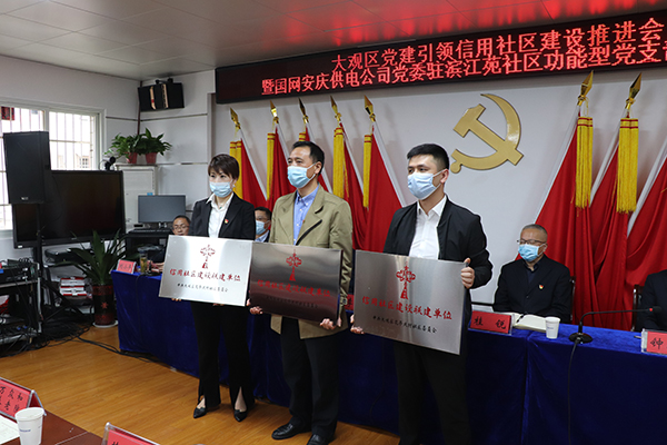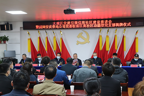 4月15日,大觀區(qū)黨建引領(lǐng)信用社區(qū)建設(shè)推進(jìn)會(huì)議暨國(guó)網(wǎng)安慶供電公司功能型黨支部揭牌儀式圓滿舉行。市委常委、組織部長(zhǎng)李明月出席儀式并作重要講話,市委組織部副部長(zhǎng)、市委非公工委書(shū)記桂銳,大觀區(qū)委書(shū)記潘功發(fā),中國(guó)移動(dòng)安慶分公司總經(jīng)理王偉,國(guó)網(wǎng)安慶供電公司黨委書(shū)記、副總經(jīng)理鐘成元參加儀式,區(qū)委常委、組織部長(zhǎng)劉小平主持會(huì)議。公司副董事長(zhǎng)蔣立勝,技術(shù)總監(jiān)、大觀區(qū)人大代表昝幼龍等聯(lián)建商家代表及各主要負(fù)責(zé)人參加儀式。儀式上,公司獲得“信用社區(qū)建設(shè)聯(lián)建單位”授牌。