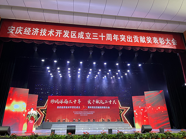 8月8日下午,安慶市經(jīng)濟(jì)技術(shù)開發(fā)區(qū)成立三十周年突出貢獻(xiàn)獎(jiǎng)表彰大會(huì)在市黃梅戲藝術(shù)中心召開,會(huì)上,一批為經(jīng)開區(qū)建設(shè)發(fā)展做出突出貢獻(xiàn)的各行各業(yè)的杰出代表受到隆重表彰。公司黨委書記、董事長(zhǎng)、總經(jīng)理顏志勇榮獲安慶市經(jīng)開區(qū)成立三十周年突出貢獻(xiàn)獎(jiǎng)!