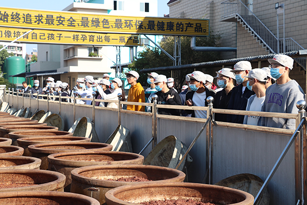 同學們了解到胡玉美釀造食品有限責任公司是“安慶師范大學實踐教學基地”,興致勃勃地參觀了胡玉美非遺技藝操作車間及曬場,通過沉浸式的研學感受到堅守傳統(tǒng)文化的美好,體會到胡玉美非物質(zhì)文化遺產(chǎn)技藝的豐厚底蘊,明白了精益求精的“醬”心獨具,更提升了本土文化自信。