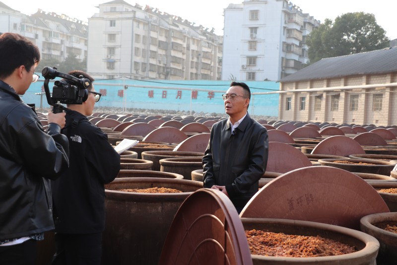 座談會上,采訪組一行與董事長顏志勇就安慶首個國家工業(yè)遺產胡玉美醬園的保護利用、制度完善及未來規(guī)劃進行了深入交流。在接受采訪時,董事長說道:“工業(yè)遺產是工業(yè)文化的重要載體,記錄了工業(yè)發(fā)展不同階段的重要信息,見證了工業(yè)發(fā)展的歷史進程。經過公司多年來修繕保護與改造利用,在保護利用中正悄然蛻變,‘工業(yè)銹帶’正變身‘生活秀帶’。以煥發(fā)工業(yè)遺產的當代價值,喚醒大眾對工業(yè)遺產的美好回憶。”隨后,采訪組一行還參觀了核心物項及古法釀曬工藝流程。據(jù)悉,該節(jié)目將在安徽經濟報、網等平臺刊登播出。