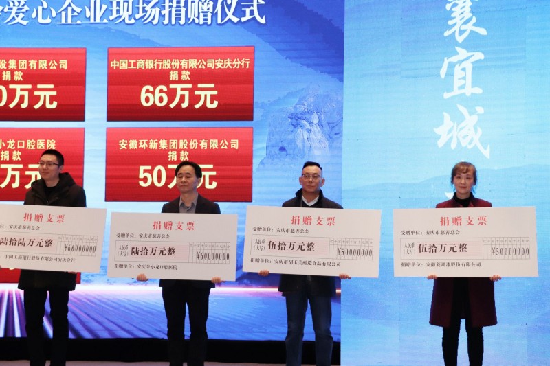 12月18日下午,安慶市首屆慈善大會在安慶栢景國際酒店隆重召開,在愛心企業(yè)現(xiàn)場捐贈儀式上,公司黨委書記、董事長顏志勇代表胡玉美再次捐資50萬元,于市慈善總會設(shè)立胡玉美冠名基金。副總經(jīng)理昝幼龍陪同參會。