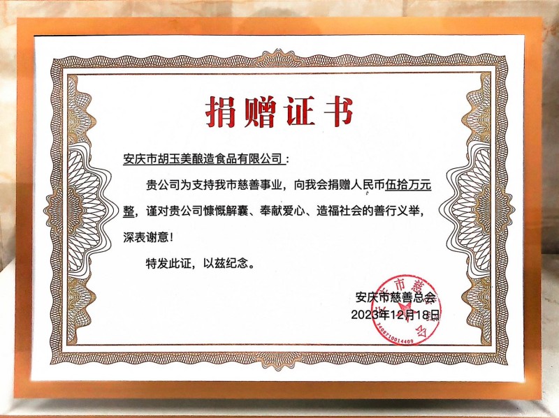 慈善你我同行,共襄公益事業(yè)。多年來公司主動承擔社會責任,先后在扶貧、捐資助學(xué)、防疫救災(zāi)等公益慈善方面捐贈達300多萬元愛心資金,公司一直以來堅持的慈善事業(yè),正是推動企業(yè)沿著向上、向善的發(fā)展航道矢志前行的一股強大力量。未來,胡玉美將繼續(xù)積極參與公益慈善事業(yè),以干在實處、走在前列、勇立潮頭的精神風貌,傳播真善美、傳遞正能量,讓愛心善舉在宜城蔚然成風。