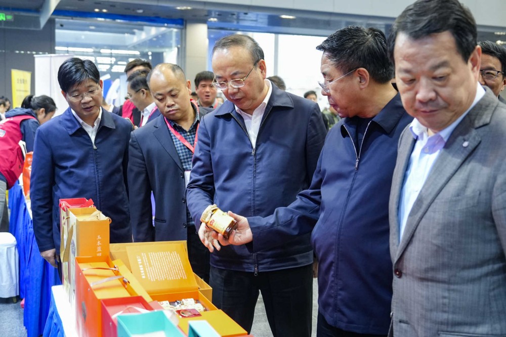 大會(huì)期間,在家鄉(xiāng)特色美食專(zhuān)區(qū),胡玉美產(chǎn)品紛紛亮相。省政協(xié)副主席,安慶市委書(shū)記張祥安等領(lǐng)導(dǎo)蒞臨胡玉美展區(qū)參觀(guān)指導(dǎo);宜商代表們也紛紛駐足公司展臺(tái),品嘗起家鄉(xiāng)特色美食。