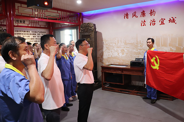 參觀結(jié)束后,在鮮艷的黨旗前,黨委書記顏志勇高舉右拳,帶領(lǐng)全體黨員重溫入黨誓詞,錚錚誓言讓初心更堅定、使命更篤行,全體黨員更深切體會到作為一名共產(chǎn)黨員的責(zé)任感和使命感,更加堅定了共產(chǎn)主義信念。