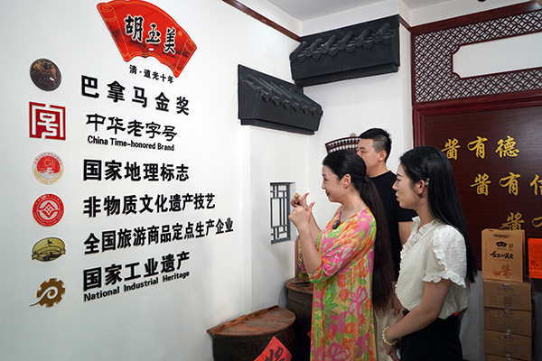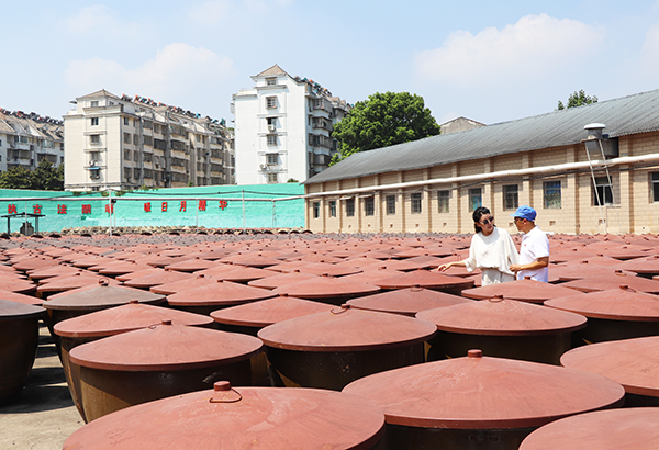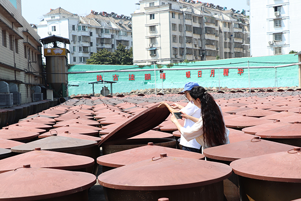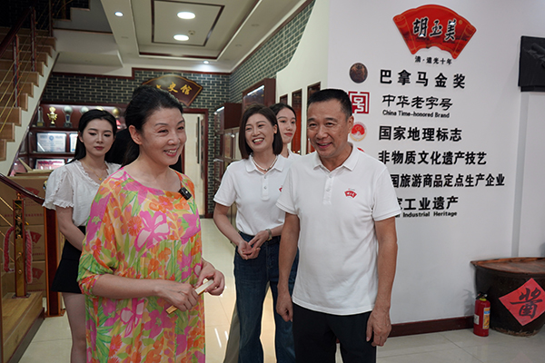 韓再芬一行先后來到胡玉美四牌樓店、公司曬場,實地參觀了歷史遺存建筑“石箍門”、“胡玉美文史館”展示區(qū)。拍攝過程中,韓再芬對胡玉美悠久的發(fā)展歷程、厚重的歷史文化、省級非遺技藝和公司產(chǎn)品等給予了高度的肯定和贊揚,并表示,“胡玉美是中華老字號,安慶家家戶戶必備胡玉美蠶豆醬,這是我們安慶的驕傲?!?/span>