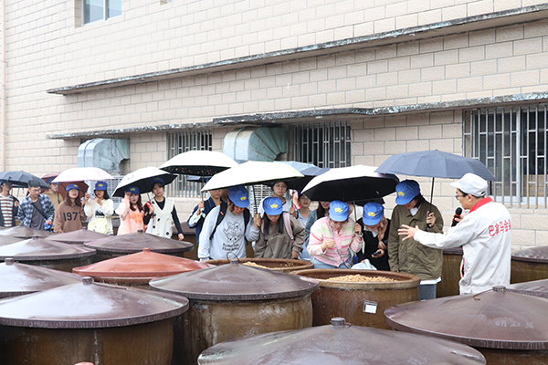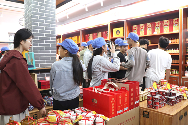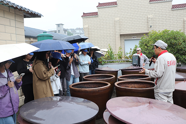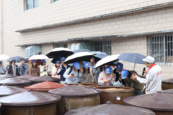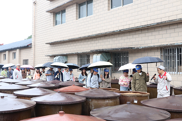 伴隨著副總經(jīng)理昝幼龍對于胡玉美的歷史沿革、非遺制作技藝知識的講解,研學(xué)隊(duì)伍來到曬場,大家圍繞在醬缸旁探索這個(gè)醬香四溢的秘密基地,領(lǐng)略醬中蘊(yùn)含的歲月與心血。參觀紅樓專賣店時(shí),琳瑯滿目的產(chǎn)品和耳目一新的包裝設(shè)計(jì)更是一秒吸引大家的目光,讓人忍不住帶走這醬中蘊(yùn)藏的人間美味。