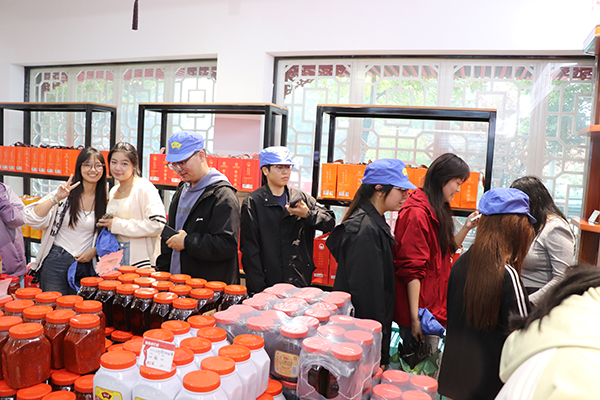 隨著文化自信的不斷增強(qiáng),越來越多的年輕人將追求“國潮”作為表達(dá)自我情懷和時(shí)尚態(tài)度的新形式,而胡玉美的與時(shí)俱進(jìn)便是對中國傳統(tǒng)文化的傳承與弘揚(yáng)。此次活動,在樂教樂學(xué)中引導(dǎo)學(xué)生親身感受民族企業(yè)的文化底蘊(yùn)和民族品牌的奮進(jìn)拼搏精神,增強(qiáng)了大家的文化自信心和自豪感?;顒游猜?,師生們留影紀(jì)念。