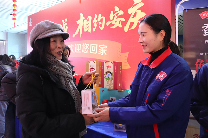 活動期間,胡玉美在安慶動車站出站口、安慶機場到達口設立了暖心站點,集中展示公司醬界臻品,并精心準備了滿載鄉(xiāng)情的醬心好禮,向返鄉(xiāng)游子免費贈送,讓他們感受到胡玉美的溫情問候。一位返鄉(xiāng)游子表示:“一出站就看到家鄉(xiāng)的老牌子,聞到熟悉的醬香,感覺特別親切?!?/span>