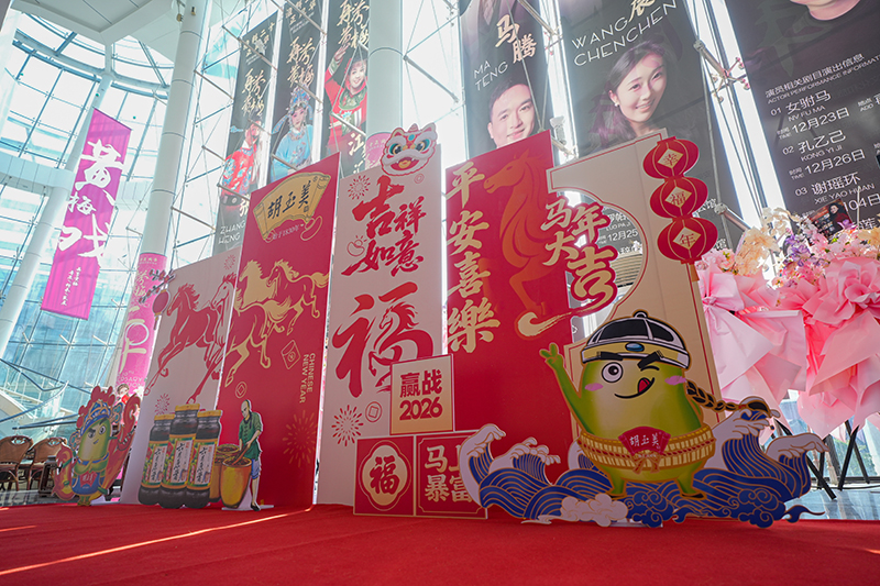 作為胡玉美與市民共慶新春的重要互動環(huán)節(jié),晚會開場前,胡玉美為現(xiàn)場觀眾精心準(zhǔn)備了新春福袋,由四位胡玉美專屬IP“蠶小豆”派發(fā),將這份融合品牌溫度與醬心的新春祝福,傳遞到每一位觀眾手中。晚會還特別設(shè)置了胡玉美產(chǎn)品展示區(qū)及專屬打卡墻,讓觀眾近距離感受品牌深厚的文化底蘊(yùn)與獨特的非遺技藝。