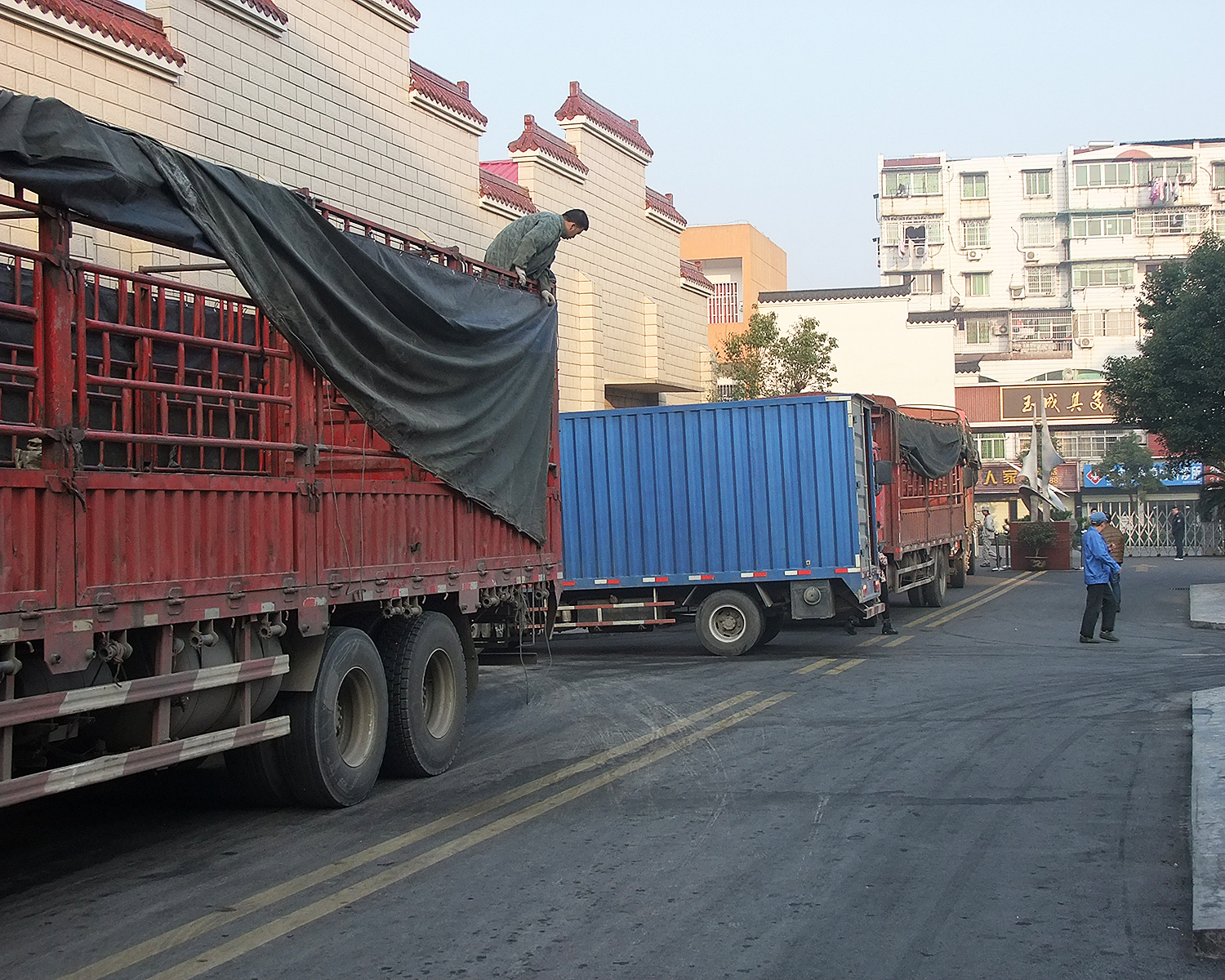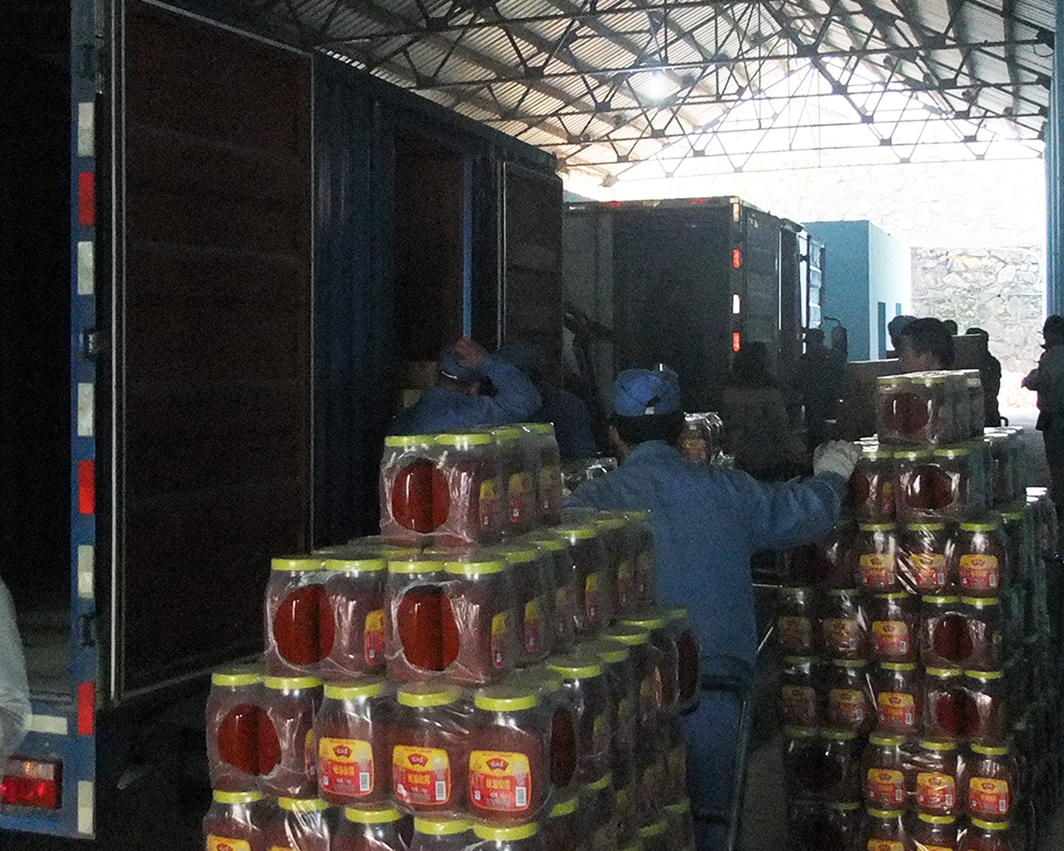 物流車輛排起“一字長(zhǎng)蛇陣”等待產(chǎn)品“上車”