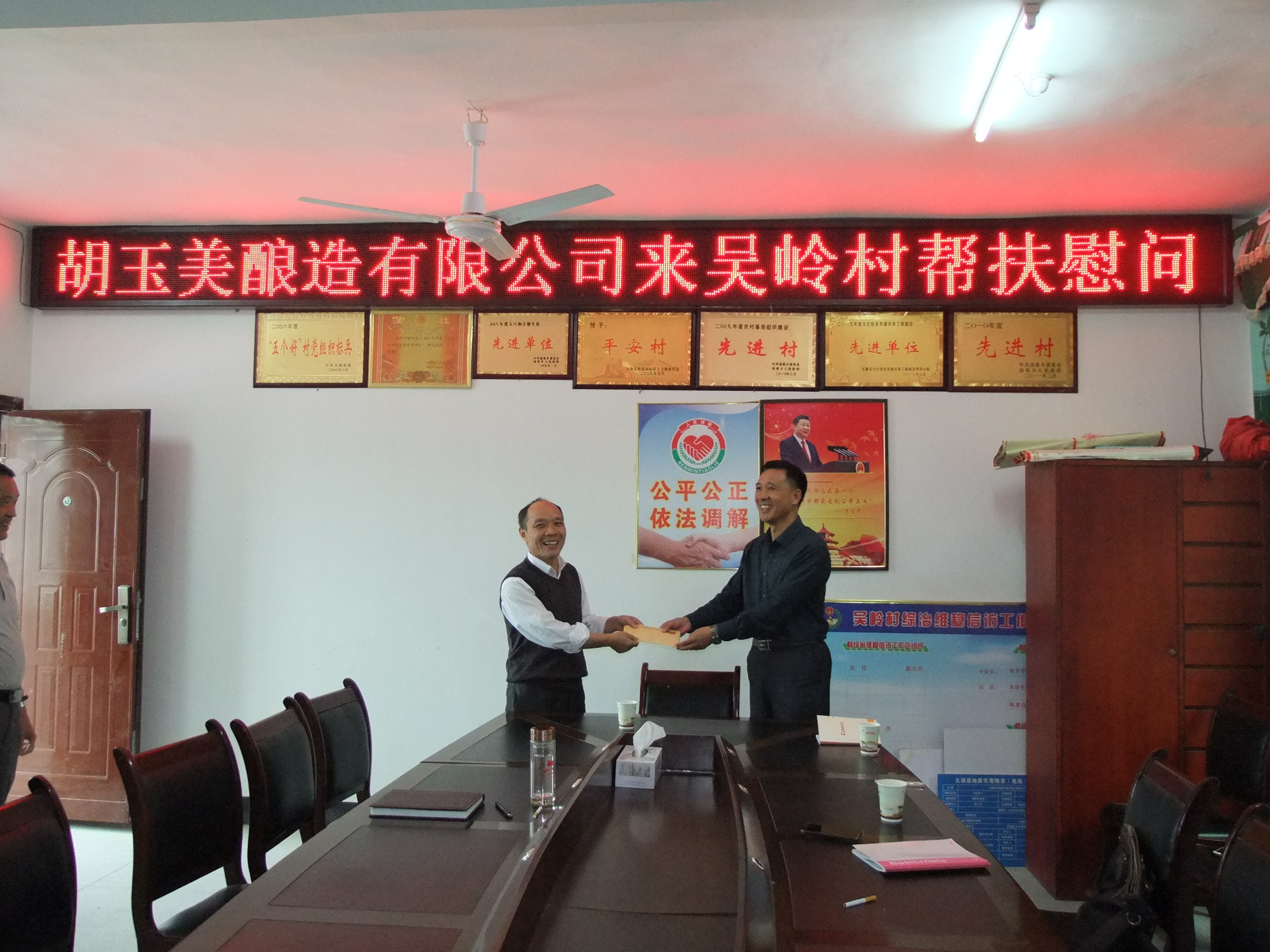 2017年9月20日,公司黨委副書記蔣立勝代表公司前往太湖縣湯泉鄉(xiāng)吳嶺村開展扶貧慰問工作。吳嶺村書記吳皖東、第一書記兼駐村工作隊(duì)隊(duì)長(zhǎng)趙鋒、副隊(duì)長(zhǎng)郭祥林、村主任張文學(xué)接待了蔣副書記一行,并就扶貧產(chǎn)業(yè)建設(shè)情況開展座談會(huì)。會(huì)后,蔣立勝代表公司向吳嶺村捐贈(zèng)一萬(wàn)元人民幣用于扶貧工作建設(shè)。