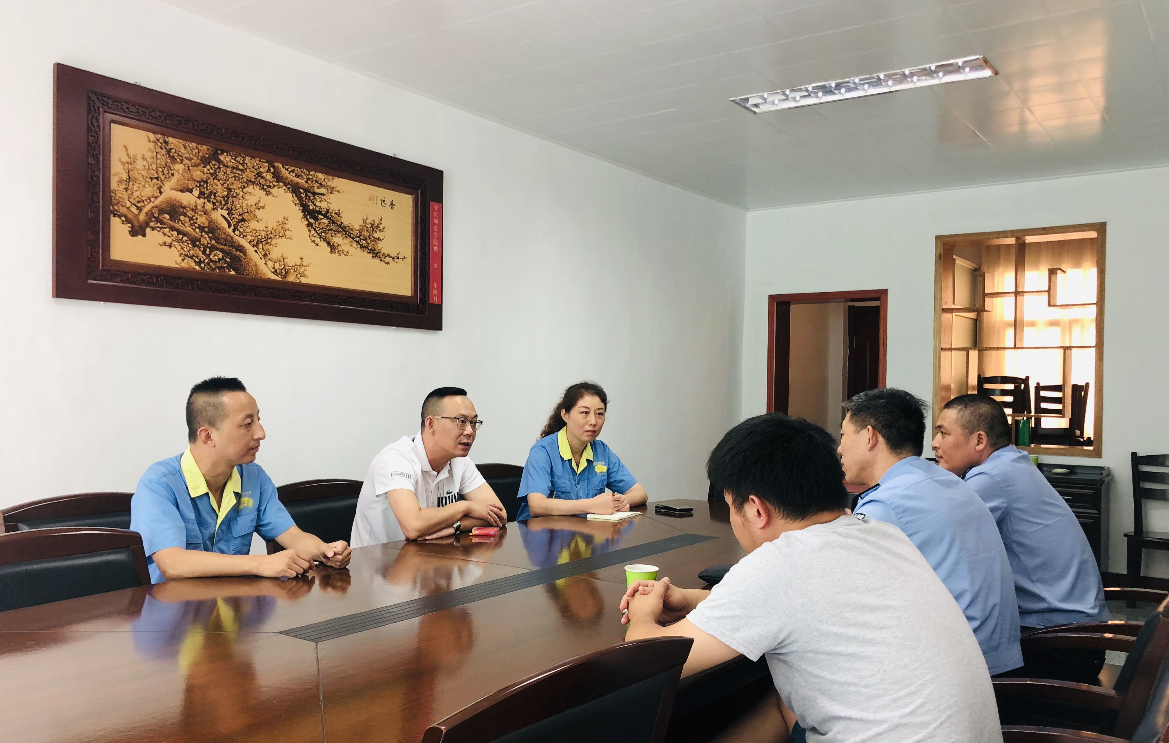2019年7月24日,安慶市大觀分局刑警大隊教導(dǎo)員李承順一行蒞臨公司,這是安慶公安認(rèn)真貫徹省公安廳為民營企業(yè)發(fā)展創(chuàng)造良好社會治安環(huán)境部署的重要舉措。公司黨委書記、董事長顏志勇給予了熱情接待,工會主席潘敏、保衛(wèi)科科長向龍陪同參加。