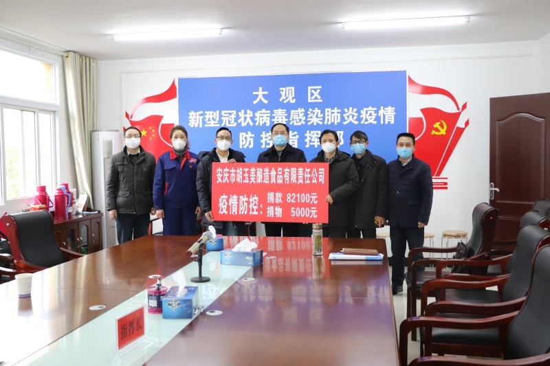 疫情防控沒有局外人,唯有眾志成城、守望相助,方能共渡難關(guān)。盡管來勢洶洶的疫情給公司帶來嚴(yán)峻的挑戰(zhàn)和沖擊,但胡玉美人并沒有局限于自身一時得失,而是始終將國家利益擺在第一位。公司積極發(fā)起抗疫募捐倡議,董事長顏志勇帶頭捐款10000元,公司273人全員踴躍參與,共籌得善款82100元,全部捐給大觀區(qū)疫情防控指揮部。此外,公司還捐贈了價值5000元的胡玉美蠶小逗系列醬。涓滴小善,匯聚大愛,在這個特殊的時刻,胡玉美人雖無法到一線抗擊疫情,但會在平凡的崗位上為疫情防控工作盡一份綿薄之力!